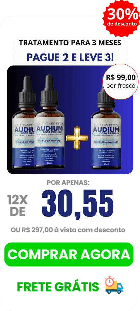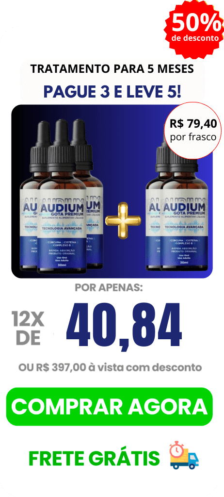 O Audium Gotas Premiun® é um composto 100% natural aprovado pela ANVISA, que proporciona a reversão dos problemas de zumbido no ouvido (tinnitus) e ajuda na melhoria da audição.