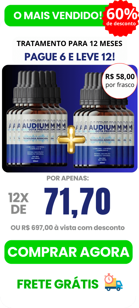 O pacote mais vendido é o de 5 meses de tratamento, que te ajuda a melhorar em até 5x mais sua audição, auxiliando na redução do zumbido de ouvido e proporcionando resultados duradouros. Além de possuir 65% de desconto, recomendamos sua escolha porque esse é o tempo em que observamos os melhores resultados no tratamento dos problemas de audição.